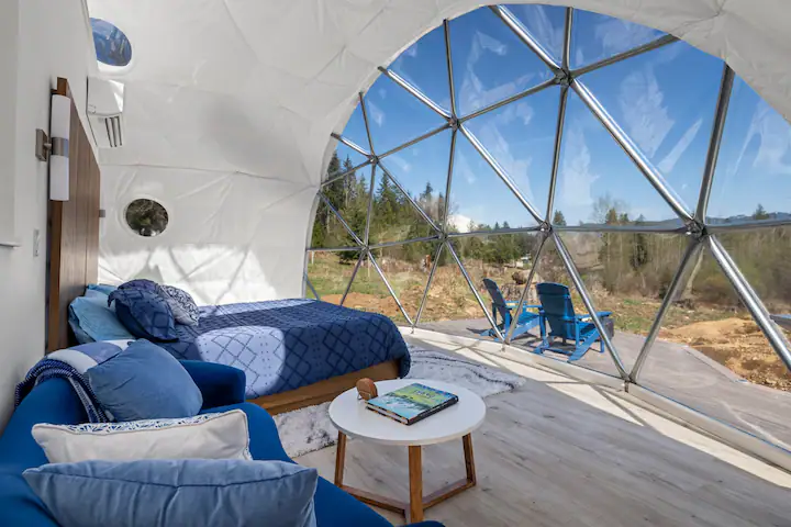 Embark on an unparalleled adventure to our exclusive Stargazing Geodome, a hidden gem near the majestic Mt. Rainier National Park. Cradled in the untouched splendor of Washington’s wilderness, our geodome presents a blend of enchantment and comfort. Set within the scenic embrace of Wildlin Farm, it promises a sojourn that’s both luxurious and grounded in nature.
